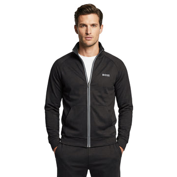 BOSS Authentic Z Full Zip Jacket. This zip-up BOSS track jacket is great for layering over a casual look. Soft cotton terry fabric with branding on a sporty stripe.