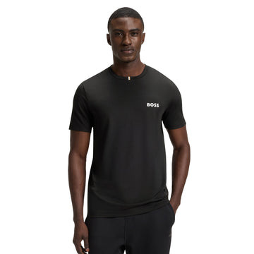 Mens BOSS TOC T-Shirt WI25. With moisture management and odour control, this slim BOSS Menswear T-shirt keeps you feeling fresh. Engineered in stretch piqué. Signature stripe and contrast logo.