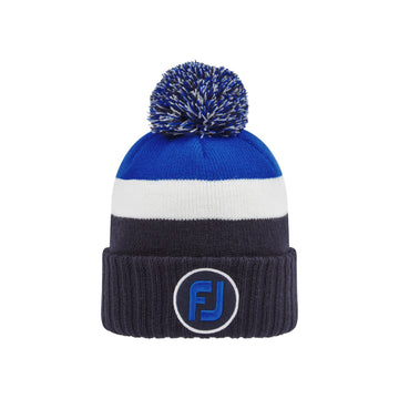 FootJoy Multi Pom Bobble Hat. This tri-coloured, FootJoy winter, pom beanie hat is ideal for the colder winter months; constructed using a fleece fabric that maintains a snug fit whilst providing essential warmth.