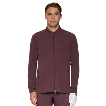 Mens J.Lindeberg Golf KV Hybrid Jacket. Updated for Fall Winter 2025, a technical, outerwear jacket constructed in a lightweight, water and wind resistant, stretch fabric with taping and a dotted bridge at the back.