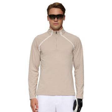 Mens J.Lindeberg Players Mid Layer. New for Pre Spring 26, a technical quarter zip constructed in a functional fabric with a taped stripe design to the shoulders.
