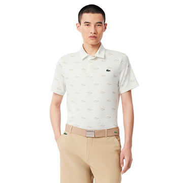 Lacoste Golf All Over Printed Polo Shirt. A hidden snap placket, short sleeved polo shirt constructed in a soft and breathable jersey fabric which offers exceptional moisture wicking properties.