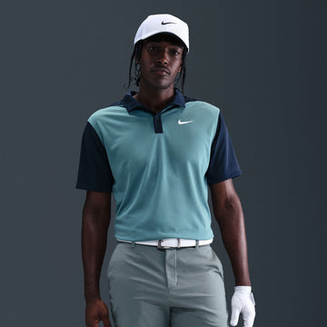 Mens Nike Golf Dri-Fit Victory+ Blocked Shirt. New for Holiday 25, tailored for golf, the colour blocked Victory+ Polo is made from smooth, lightweight knit material. Its shaped collar, 2-button placket and classic fit deliver a polished, links-ready look.