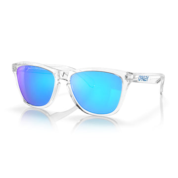 Oakley Frogskins Sunglasses. In pop culture, it was a time like no other. Ronald Reagan was in the White House, “The Terminator” was in the box office and Run-D.M.C. was in certified gold. It was also the time when Oakley created one-of-a-kind sunglasses called Frogskins. Oakley resurrected the original tooling from the early '80s to produce a new line, giving you a chance to own a piece of history. Constructed using Oakley's durable yet gravity defying O-Matter frame material, while letting innovative technologies like XYZ Optics throw their weight around. UV protection - The Plutonite lens material filters out 100% of all UVA, UVB, UVC and harmful blue light up to 400nm. These glasses also feature High Definition Optics (HDO), a collection of patented technologies that allow Oakley eyewear to meet or exceed the testing standards of the American National Standards Institute for optical clarity, visual fidelity and impact resistance. Crystal Clear frame with Prizm Sapphire lenses. Prizm technology is a revolution in lens optics, built on decades of color science research. Prizm Sapphire lenses allow 12% light transmission and provide increased contrast and depth perception in bright light conditions.
