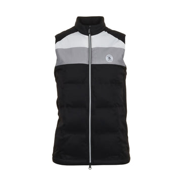 Mens Original Penguin Golf Colour Block Lightweight Padded Vest. A full zip, place filled, layering/outerwear garment with a water repellent coating to provide extra protection from the elements. Constructed from a moisture wicking fabric; OPG moisture management system, will keep you fresh and dry throughout your round.