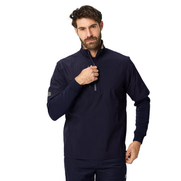 Mens Oscar Jacobson Arlington Waterproof Golf 1/2 Zip Jacket. The Arlington is a lightweight, short sleeve waterproof jacket designed for comfort and protection in wet conditions. Made from a highly breathable fabric, it keeps you dry while allowing optimal airflow. The 1/2 zip design allows for easy on-and-off wear, while the taped seams and waterproof zipper provide full protection.
