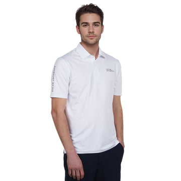 Mens Oscar Jacobson Bullock Tour Golf Polo Shirt. A beautifully crafted polo fabricated in a lightweight stretch fabric. The stretch, polyester blend fabric offers the modern golfer unrivalled freedom of movement and breathability. High level of moisture management through wicking, keeps you fresh through an anti-bacterial agent and also offers UPF protection.