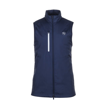 Mens Puma Golf Hielands Vest. A full zip, hybrid vest with Primaloft quilting. The Primaloft fill is both lighter and warmer than down and also stays warm whilst wet. Fabricated using Cloudspun fabric side panels which is designed to keep you dry and comfortable whilst offering 4 way stretch and breathability.