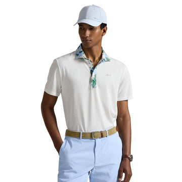Mens RLX Ralph Lauren Floral Collar Polo Shirt. This polo shirt is crafted from moisture-wicking piqué and specially washed for a supersoft feel. A floral motif at the collar and placket adds a playful pop of pattern.