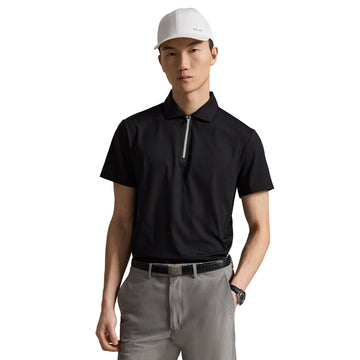 Mens RLX Ralph Lauren Performance Zip Neck Polo Shirt. This Polo shirt is crafted from moisture-wicking jersey fabric that is developed with extra stretch for added comfort and ease of mobility. Its RLX True-Stay collar delivers a streamlined look, enhancing the shirt’s overall tailored appearance with a balance of sophisticated style and modern functionality. The RLX True-Stay collar is specially reinforced to maintain a crisp, pristine shape even after prolonged use.